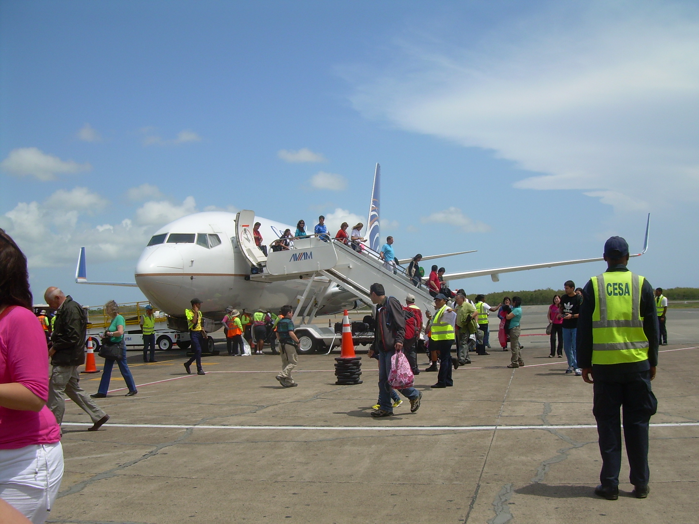 Cuando comenzamos a desembarcar, instantáneamente se adhirió a la piel la ropa que traíamos puesta, todo mérito de la humedad y el calor reinantes en el paraíso caribeño. Desde el avión caminamos al aeropuerto, que es el segundo con mayor cantidad de pasajeros en la zona del Caribe, y del que nos llamó mucho la atención su techo de hojas de palmera.