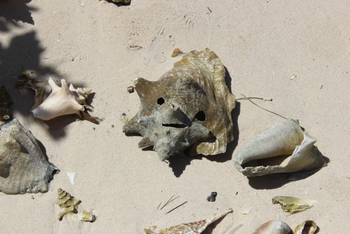 Es extraño ver tantas y tantas miles de caracolas, las más lejanas al agua grises, deshaciéndose. El guía (cuya principal función era llenar nuestros vasos con ron) dijo que aparentemente las corrientes de esa zona del mar Caribe arrastran hasta esa playa lo que queda de los caracoles.