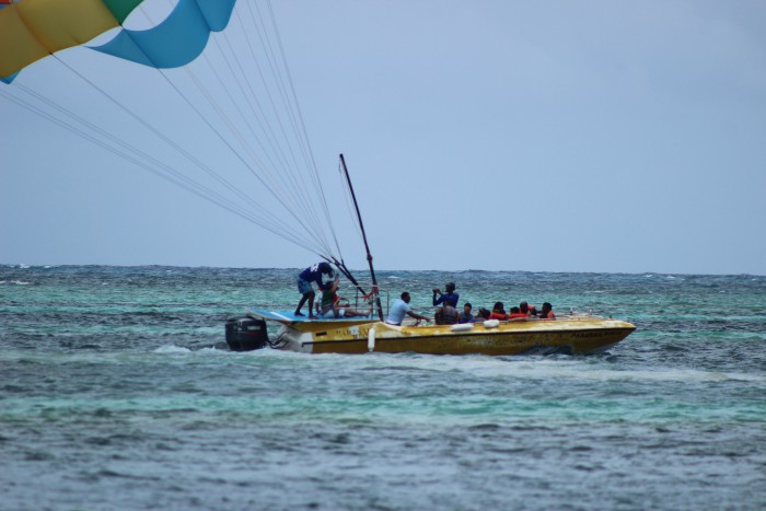 Otra opción para lograrlo son los parapentes con motor, o lanchas con parapente. Estas solo las vimos sobrevolar a bajar altura en Playa Bávaro, pero no tengo idea de dónde se contratan o cuál es el nombre real del servicio, me dijeron que es «paramotor«.