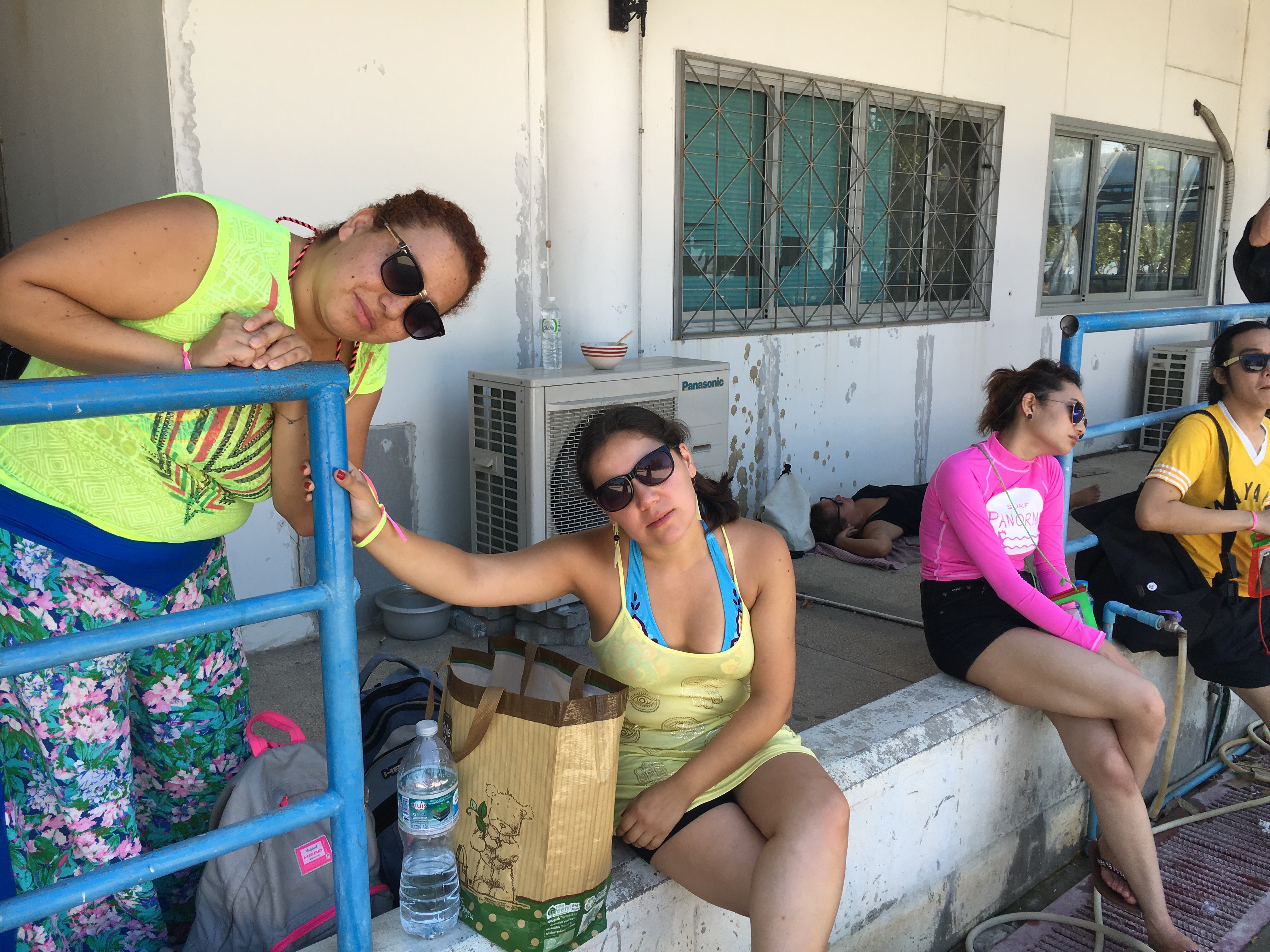Algunos durmiendo en el suelo, personas avanzando con muletas, vendajes o cabestrillos (heridas de guerra de la Full Moon Party). Otros tratando de hidratarse y la mayoría: echados o sentados donde se pudiera, tratando de mantenernos con los ojos abiertos y hablando por turnos para asegurarse que si tú no dormías, el resto de tu grupo tampoco.